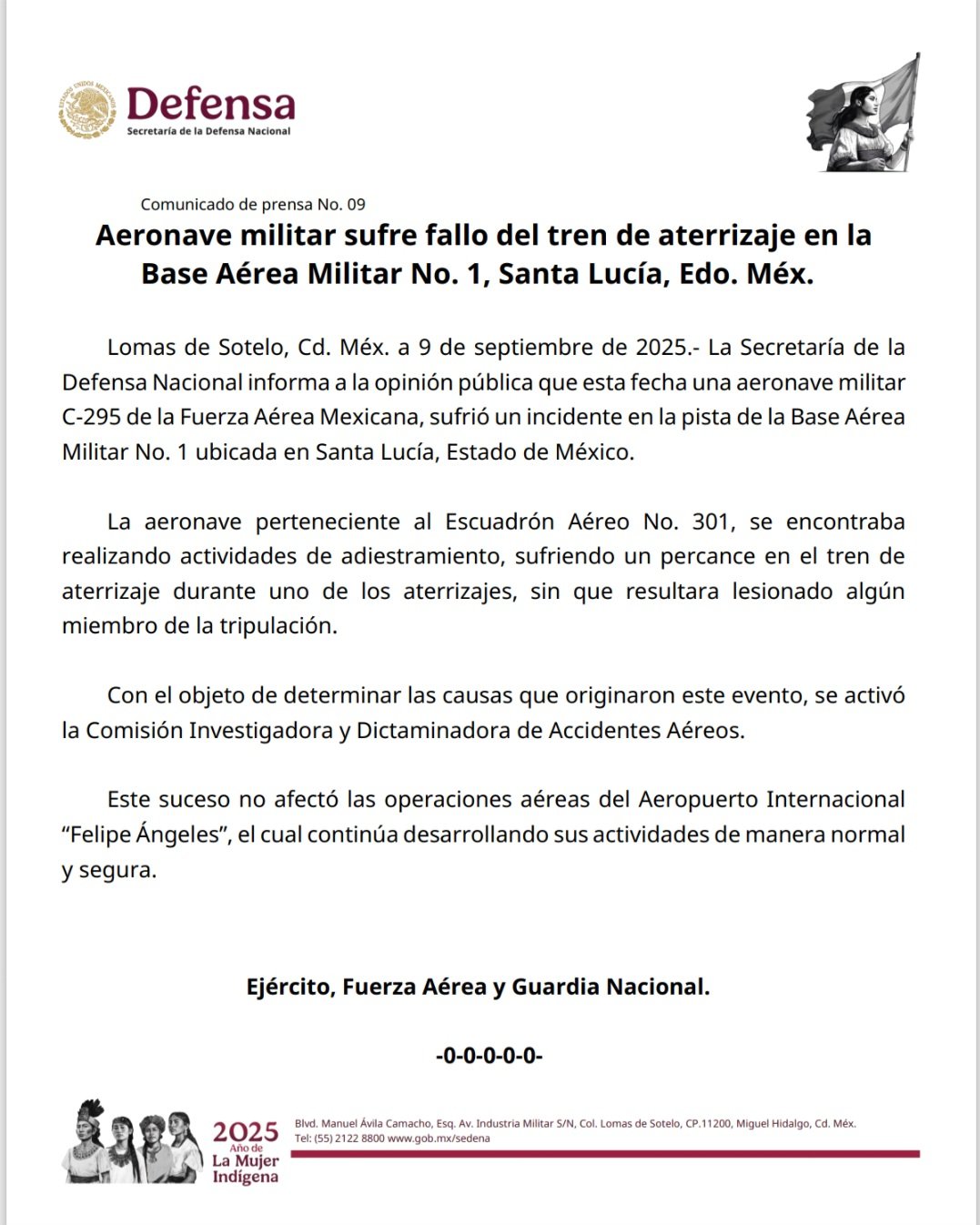 The agency also specified that this incident did not affect the air operations of the "Felipe Ángeles" International Airport, which continues to carry out its activities normally and safely.