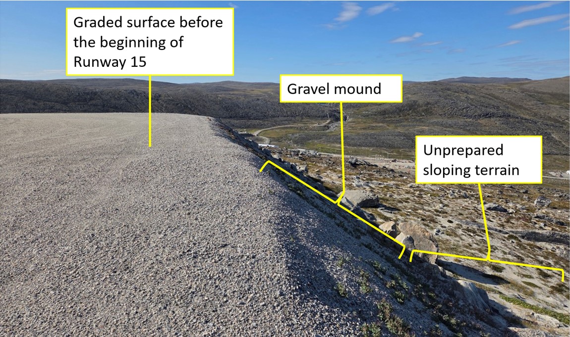The report, published Thursday, indicates that at the time of landing the [aircraft's] wheels touched the ground approximately 67 meters before the runway threshold, hitting a gravel embankment at Kangiqsujuaq Airport on March 30, 2024.