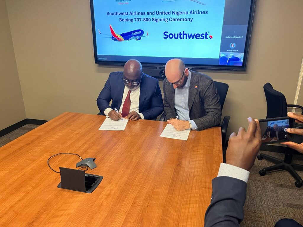 United Nigeria Airlines (UNA) has signed an aircraft sale and purchase agreement with Southwest Airlines for the delivery of six Boeing 737-800 aircraft to deepen domestic, regional and international operations.